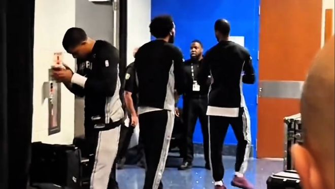 在今天对阵尼克斯的比赛,文班因为左膝过度伸展,而缺席了末节后段。