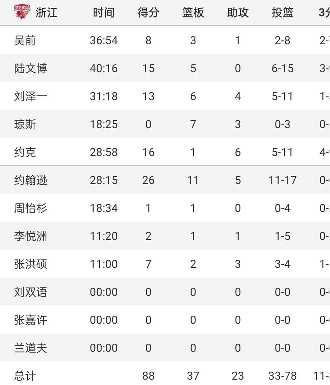 浙江3分绝杀广东!赛后数据一目了然,不是约克,最大功臣是他