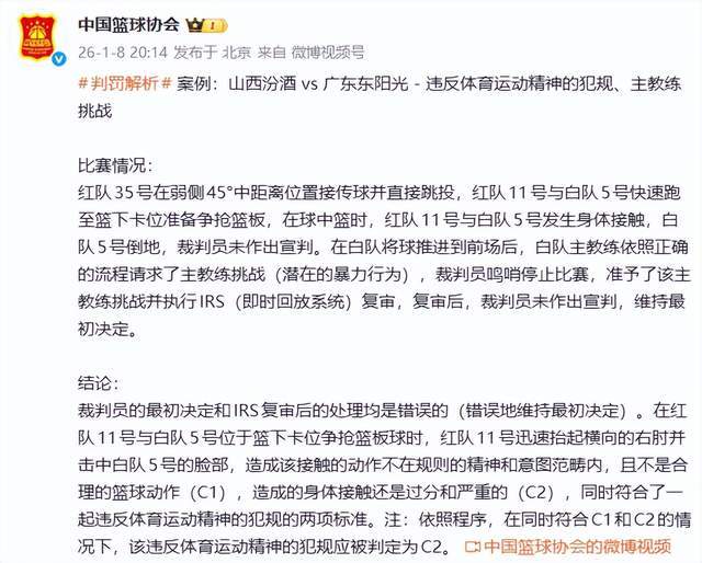 广东吃哑巴亏!篮协承认错了,漏判山西两次违体,但结果不能更改-JRS直播网