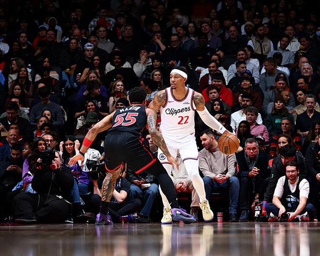 本场比赛中,快船的替补侧翼新星乔丹-米勒(Jordan Miller)的表现令人刮目相看。米勒全场出场45分45秒,投篮11中8,三分线外5中3,得到了19分2篮板6助攻4抢断的全面数据,其中还包括了1次失误,正负值更是达到了全场最高的+20。米勒在进攻端势不可挡,他展现出了全面的得分能力,他有着不俗的持球进攻能力和终结能力,他在外线投篮方面的手感也是相当不错的。不仅如此,他还展现出了超强的支配球能力,在传球和组织方面也起到了一定的作用。事实上,米勒在防守端的表现也是可圈可点的水平,同样起到了决定性的作用。米勒在本场比赛中展现出了自己全面的个人能力,他的出场时间也是因此高到了离谱的程度,自从第一节后半段出场后,在后面的比赛中甚至都没有怎么休息过。