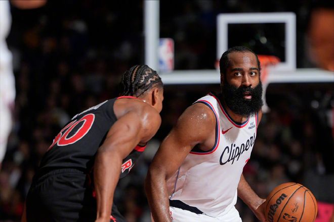 今天,快船队战胜了东部第四的猛龙队,已经取得了一波五连胜。而且这场比赛,前段时间能够主导球队走势的队内顶级核心伦纳德,因为脚踝伤病轮休。还没完,队内中锋祖巴茨,从脚踝伤势中复出了!所以,这场比赛压力最大的球员,无疑是仅剩的核心詹姆斯·哈登。哈登单独带队,又是熟悉的感觉。而且糟糕的是,比赛一开始,哈登的状态非常糟糕,虽然不至于像之前对阵活塞队那样,突破到内线不断被冒,但哈登今天的手感可以说就像寒冬那般。三分球一个都扔不进,虽然勉强拿到了6分,但失误是一直不断,导致不断被对手打反击。而且一直到半场结束前,才命中了第一记三分。