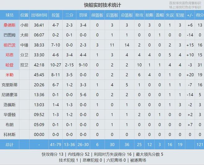 最后说说三弟哈登:出战42分钟,投篮27中10,三分15中2,罚球10中9,拿下31分2篮板10助攻1抢断1盖帽。哈登外线命中率不佳,上半场投篮13中3,三分8中1仅得10分4助攻。第四节关键时刻(最后5分钟)和加时赛,哈登一共砍下16分。