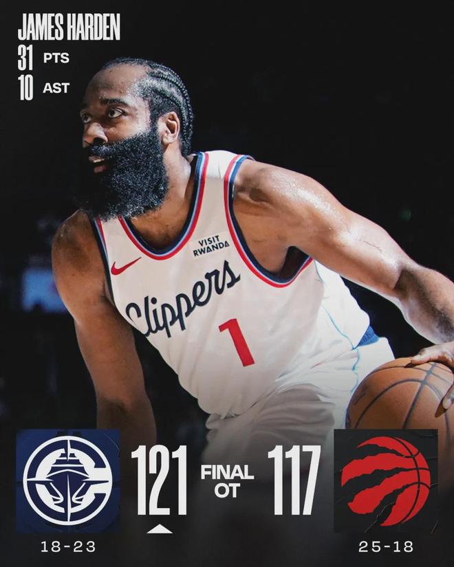 2026年01月17日 小卡缺阵&哈登末节+加时发力快船北境屠龙!哈登全场31分10助