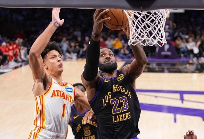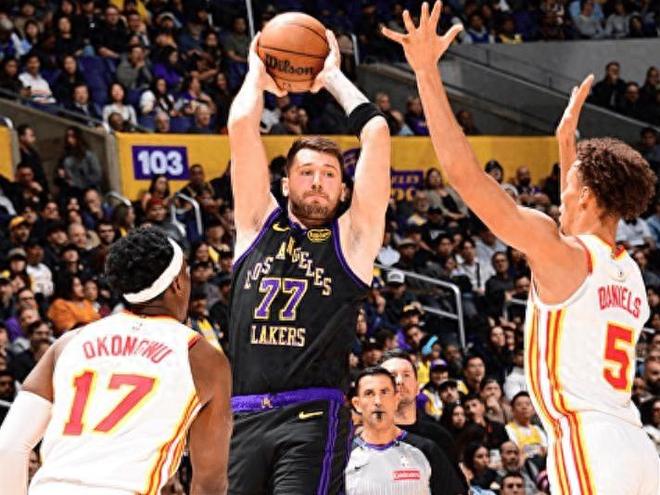 沃克虽然砍下26分4篮板3助攻,麦科勒姆贡献25分3助攻,但两人合力也难以扭转大局。老鹰的进攻在湖人严密的防守体系面前显得异常挣扎。其实湖人从比赛一开始就掌控了节奏。首节詹姆斯与东契奇双核同时发力,球队迅速建立7分领先优势。进入第二节,东契奇突然进入“杀神模式”,他连突带投一人主导了一波21-4的恐怖攻势,帮助湖人将分差瞬间拉开到21分。上半场结束时,湖人以81-60领先21分,这也是他们本赛季单节得分新高,充分展现了火力全开的恐怖状态。