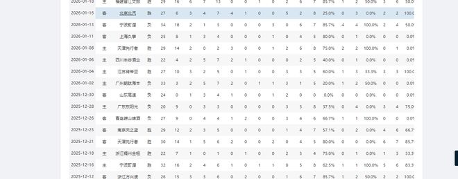 16次出场后,焦海龙场均可为球队贡献10.1分5.2篮板1助攻,投篮命中率62.1%,三分命中率41.4%。这两项命中率数据,均创下了他职业生涯出场次数超过2场的赛季新高。