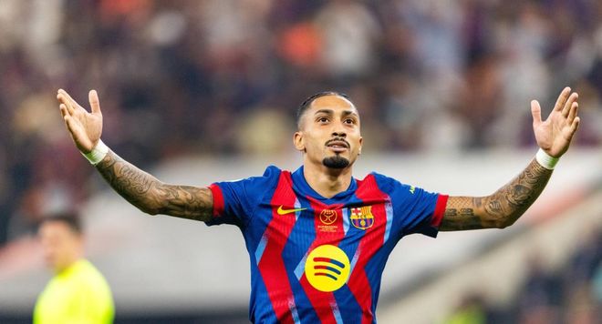 弗里克真是神了,竟然让巴萨在半决赛踢出如此残暴的比分。巴萨创造历史神迹:这是西班牙超级杯历史最大比分胜利!拉菲尼亚、费尔明和巴尔德吉组成的1.6亿进攻组合大爆发,他们3人都独造3球。拉菲尼亚2进球1助攻,费尔明-洛佩斯1进球2助攻,巴尔德吉也是1进球2助攻。
