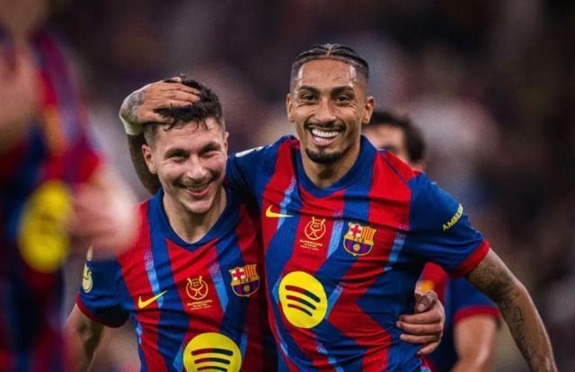 西超杯半决赛,巴萨对阵毕尔巴鄂竞技。费兰首开纪录,费尔明和巴尔德吉助攻双响+破门,拉菲尼亚梅开二度,巴萨5-0大胜对手,顺利挺进决赛!