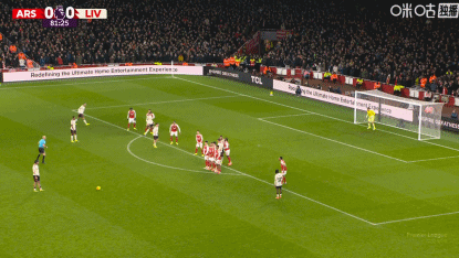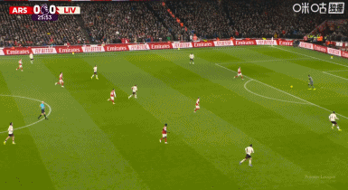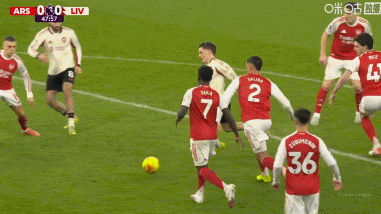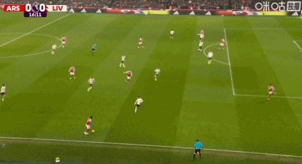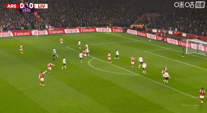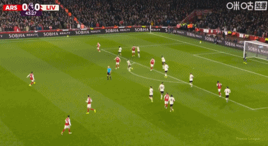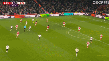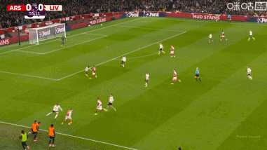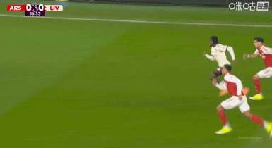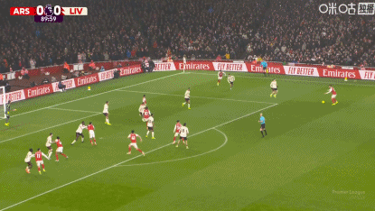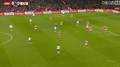 第43分钟,阿森纳默契配合,赖斯凌空打门被没收
